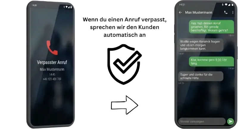 Verwandelt verpasste Anrufe in Sekunden in eine SMS-Konversation direkt auf deinem Smartphone.