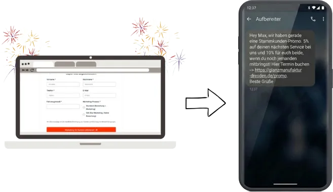 1-Klick-Marketing-Kampagnen: Reaktiviert deine Bestandskunden auf Knopfdruck für planbare Folgeaufträge.
