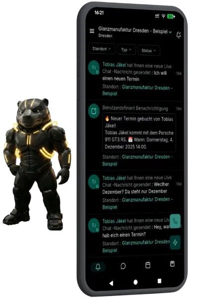 Das System antwortet automatisch, während du gerade polierst, versiegelst oder deinen Feierabend genießt.